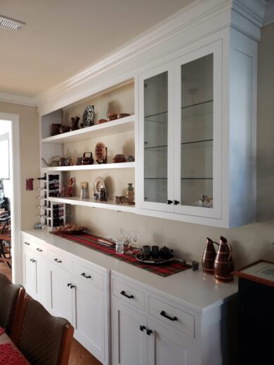 We build all types of custom wooden cabinets for our customers, including eye-catching entertainment centers, elegant bookshelf cabinetry, and cabinetry with glass doors that are ideal for your best dishware. Undoubtedly, every project in our gallery represents the collaboration between our clients’ visions and our craftsmanship. After all, our cabinets are built to perfectly fit their space.